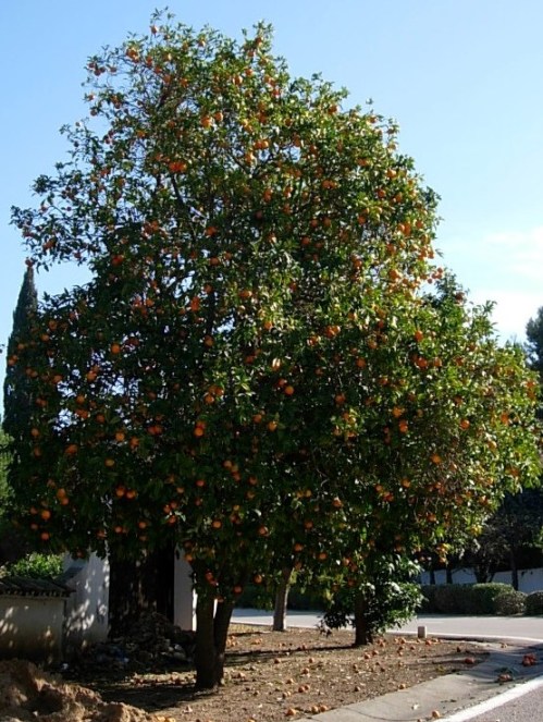 Thousands of orange trees line streets, boulevards and the parks  of towns, cities and villages throughout much of Spain. In the winter, from the end of December onwards, the fruits are ripe and deeply coloured, and suspended against their background of dark evergreen leaves they create a rich and colourful display. Those planted thus are known to British ex-pats as ‘Seville’ oranges, traditionally used for making marmalade and taste bitter and sour to eat; a deliberate ploy where the trees are planted for decorative purposes so the fruit is not picked by passers-by.