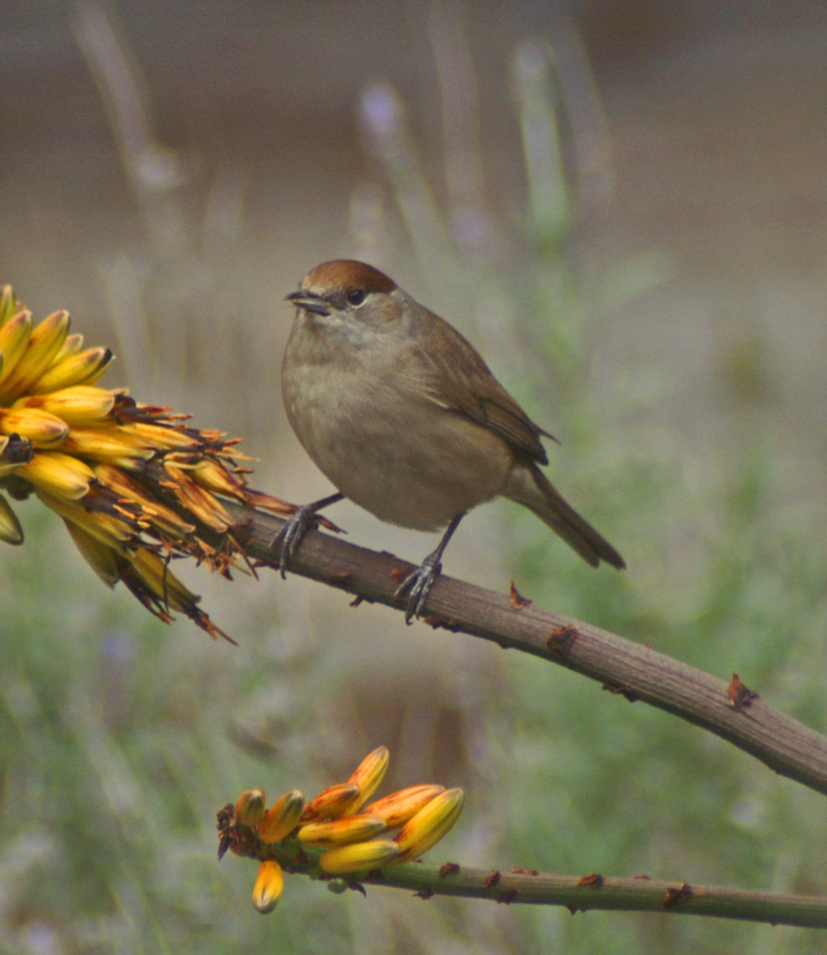 When we moved to Spain from South Wales 81/2 years ago, I brought with me a smallish aloe cactus in a plant pot. The plant has thrived here outside in the garden and is now quite large, producing its first flower spike in February of last year. It soon attracted the attentions of a female Blackcap who began to visit the flower every day and as the plant is not far from my kitchen window, I had some lovely close views through the window without disturbing her in the least.