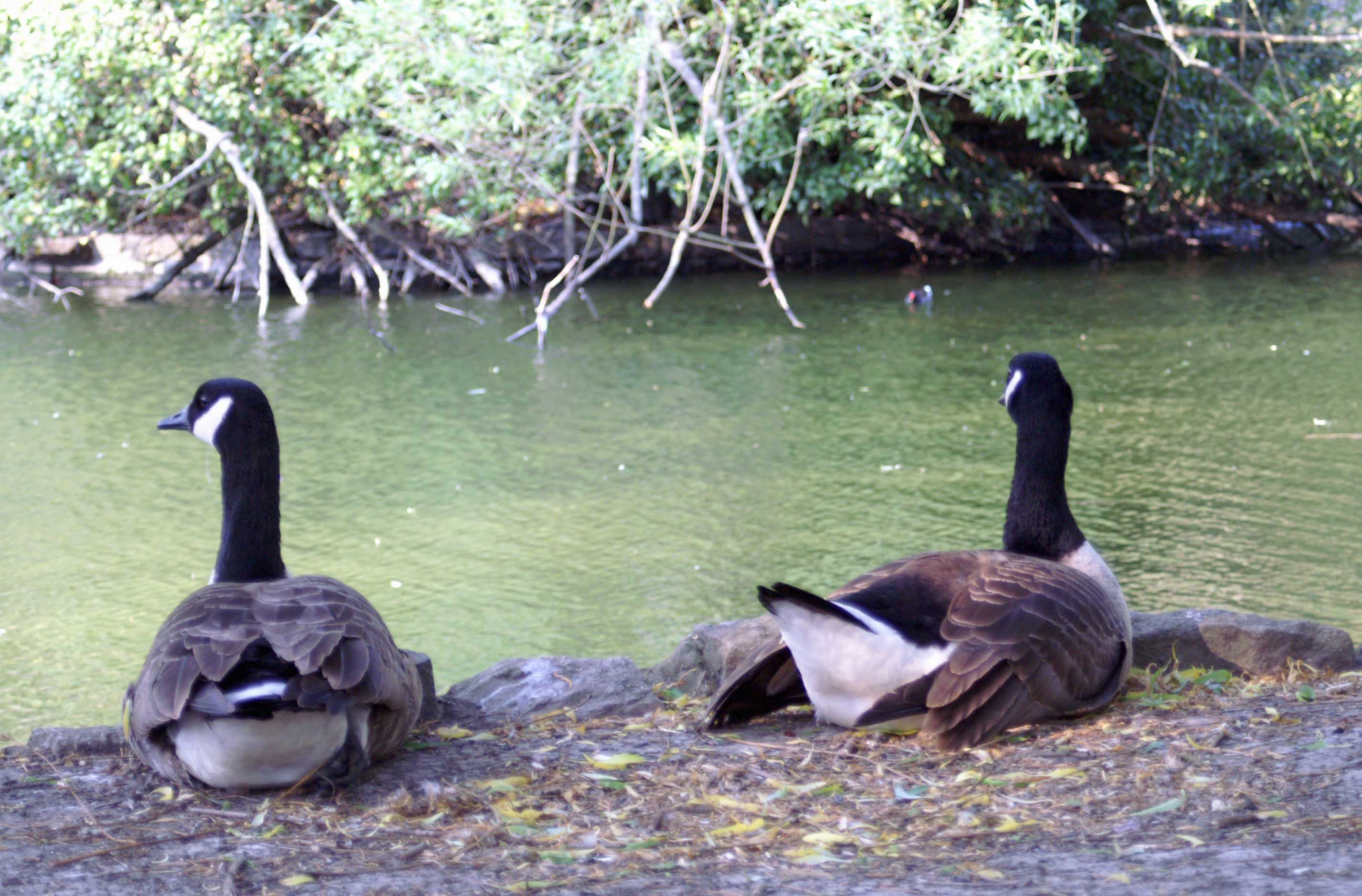The birds here are also clearly used to the close presence of people; two large Canada Geese hardly batted an eyelid as we approached the edge of the lake and little Tufted Ducks swam forward eagerly, hoping for a meal -(of course we took bread!)