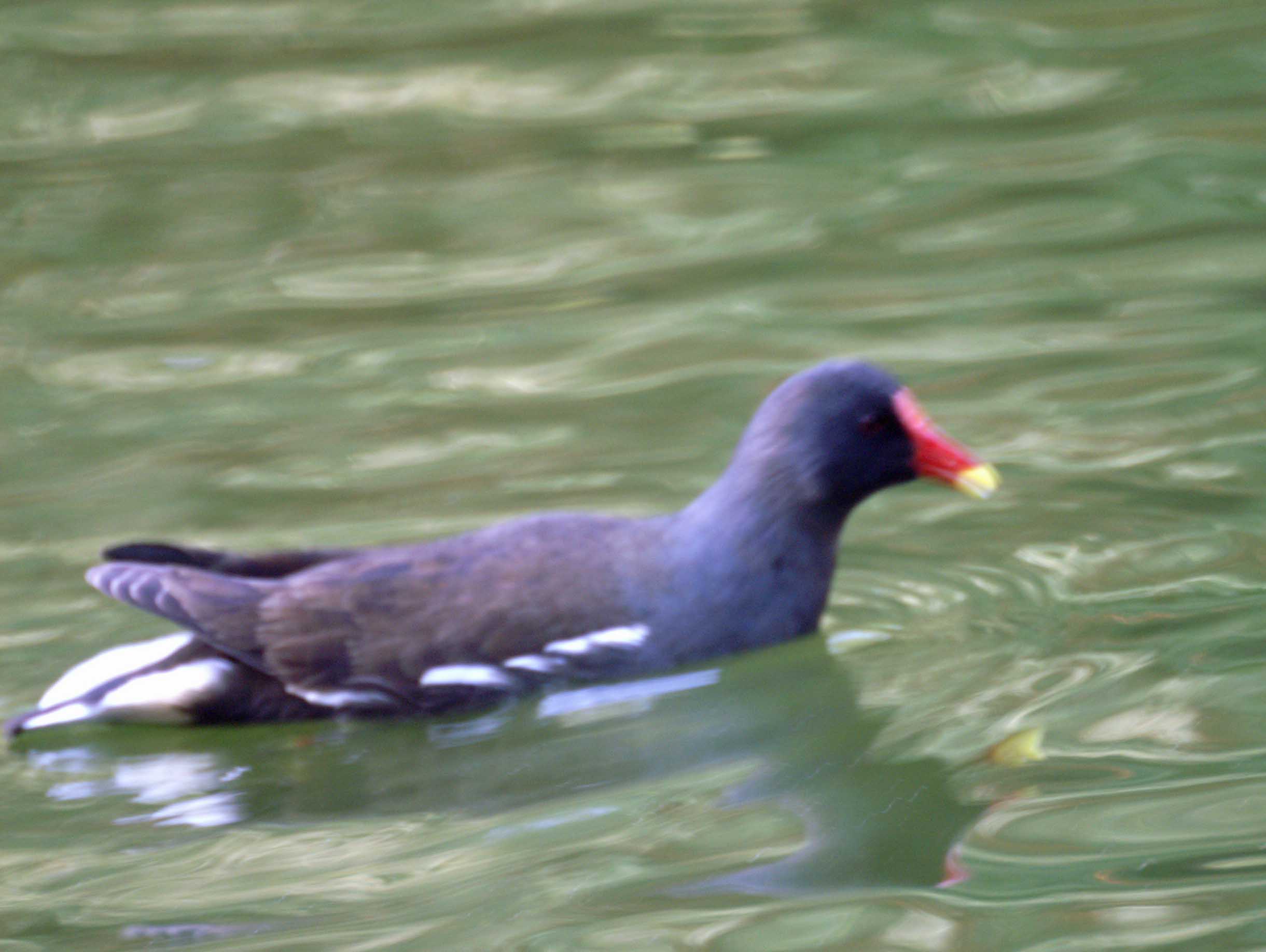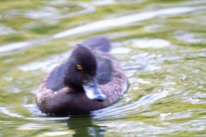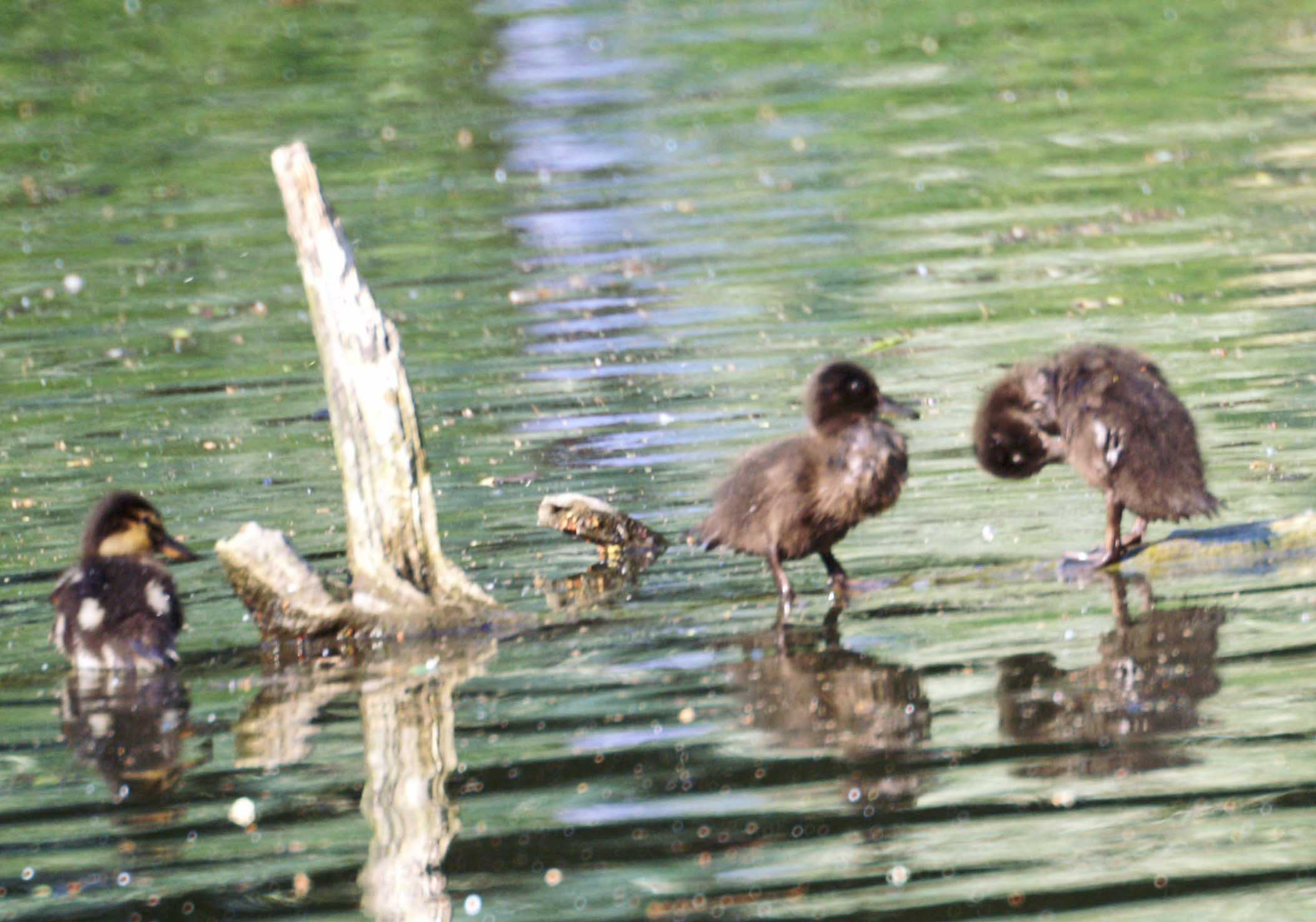 The Tufted Duck was a stranger to Britain before 1849, but is now our most common diving duck and can be found bobbing about on suitable stretches of water almost anywhere in Britain. It is very aptly named; the drake has a long tuft of feathers down the back of his head. In good light the head shows a purplish gloss. Further out there were ducklings, at least two of which looked as though they were probably Tufted Ducks, but I’m not sure about the third.