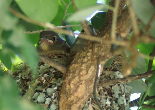 The nestlings have grown rapidly and although I can still only see two, they just about fill the nest. They still have a few straggles of wispy grey feathers clinging to their heads, but apart from that their plumage appears to be completely grown. They are very sweet and seem oblivious to being watched, although they probably wouldn’t know what to make of me anyway.