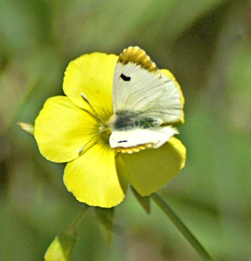 100327TGSP-Moroccan Orange Tip (f)-nectaring on Bermuda buttercup flower