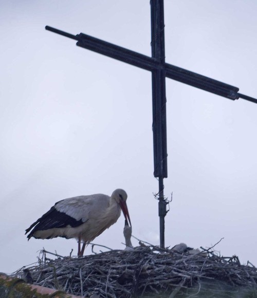 5/6/11- The young Storks are well grown now but still in the nest; it’s a bit of a squash to fit both parents in too