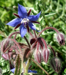 Still green is a big sprawling Castor Oil Plant bearing round prickly fruits – as yet unripe, through which is twining the lovely bindweed, Ipomoea tricolor – so aptly known as Heavenly Blue.