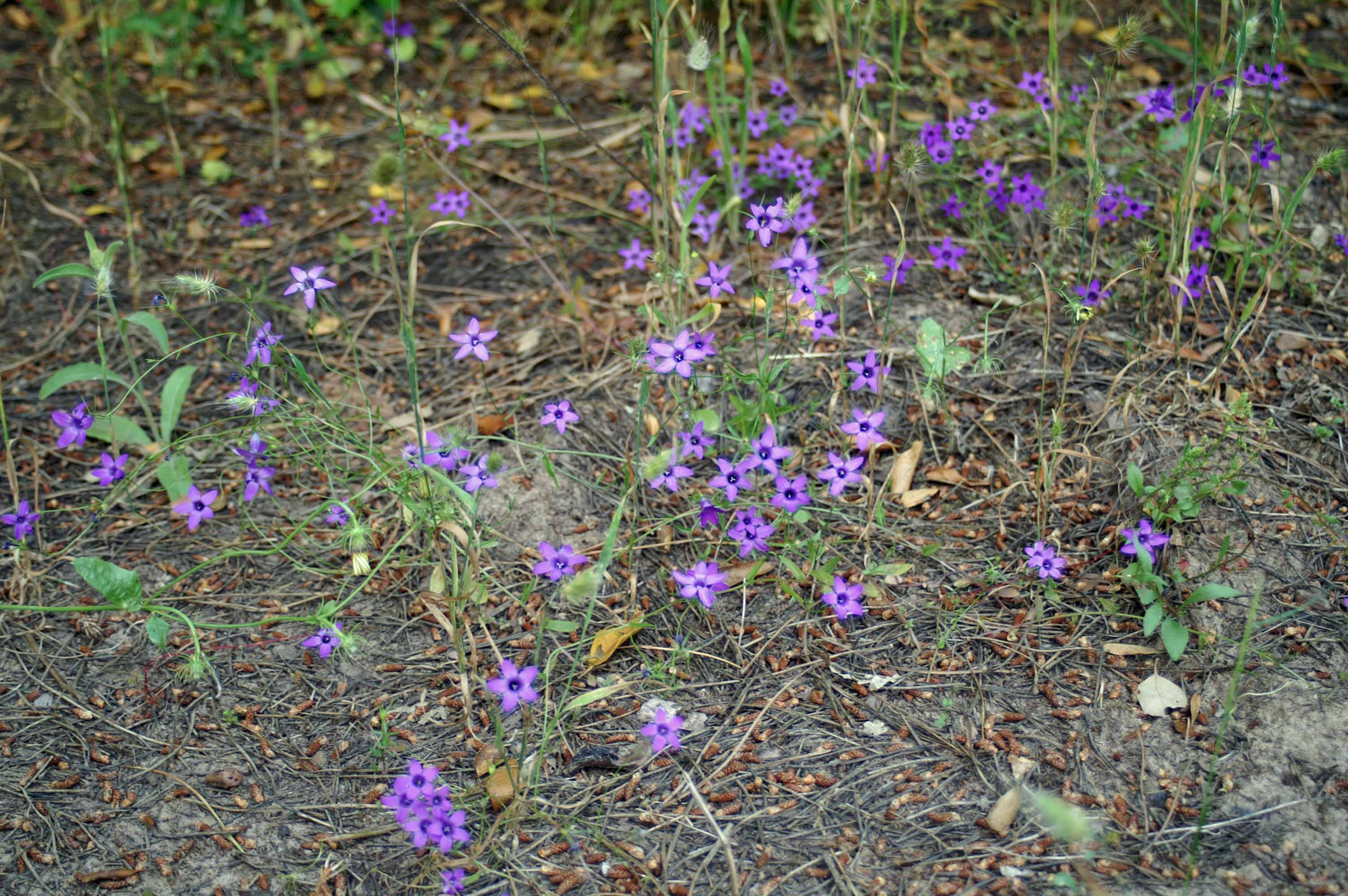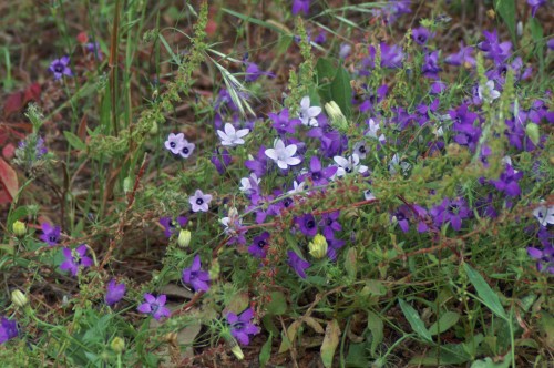 The girls were waiting in a spot where a mass of the blue-flowered plants against a background of pink-flowered Oleander could have been part of someone’s summer garden.