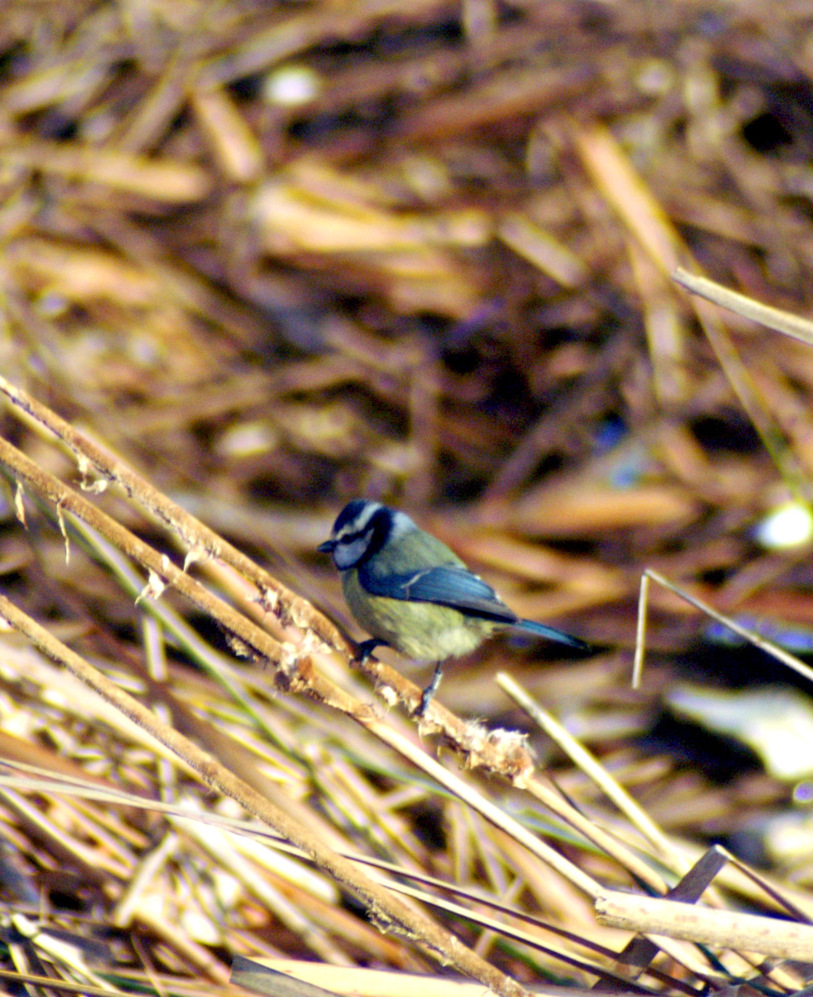 A beautiful brightly-coloured Blue Tit arrived to feed on the reed seed-heads, again complete with leg ring. One of my biggest bug-bears about people using this little stretch of beach is the amount of rubbish they leave behind and there’s nothing like a good storm for exposing the extent of the problem. It seems so wrong to see beautiful birds rummaging around plastic bags and bottles in what should be a natural setting; but then on the other hand, the birds are probably around the rubbish as it attracts, or gives cover to insects. Birds are quick to learn to exploit our less savoury habits and are far more concerned with survival than aesthetics.