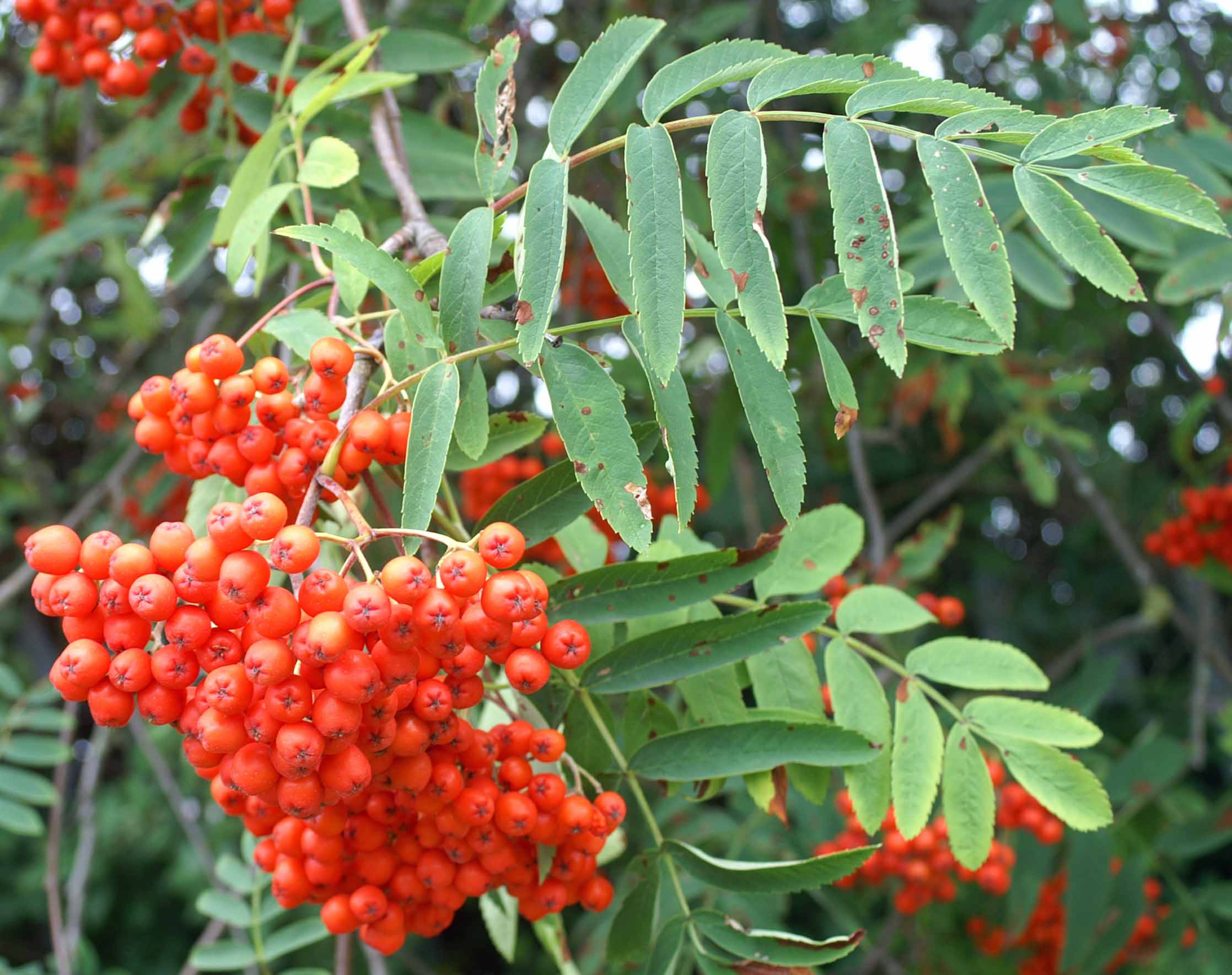 Traditionally the berries from the Rowan were processed for jams, pies, and bittersweet wines. It was also made into a tea to treat urinary tract problems, haemorhoids and diarrhea. The fresh juice of the berries is a mild laxative, and helps to soothe inflammed mucous membranes as a gargle. Containing high concentrations of Vitamin C, the berries were also ingested to cure scurvy – a Vitamin C deficiency disease. Even today, one of the sugars in the fruit is sometimes given intravenously to reduce pressure in an eyeball with glaucoma.