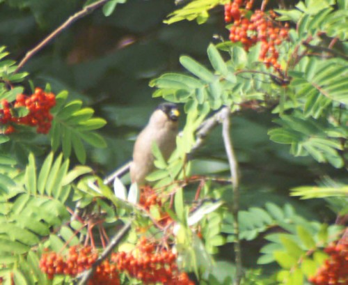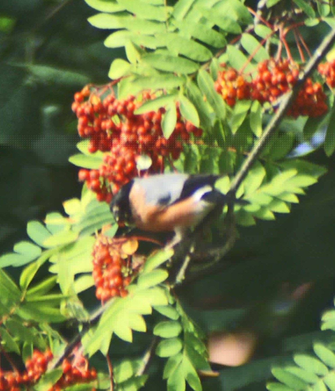 10/7/11-Leicester-Male Bullfinch feasting on rowan berries