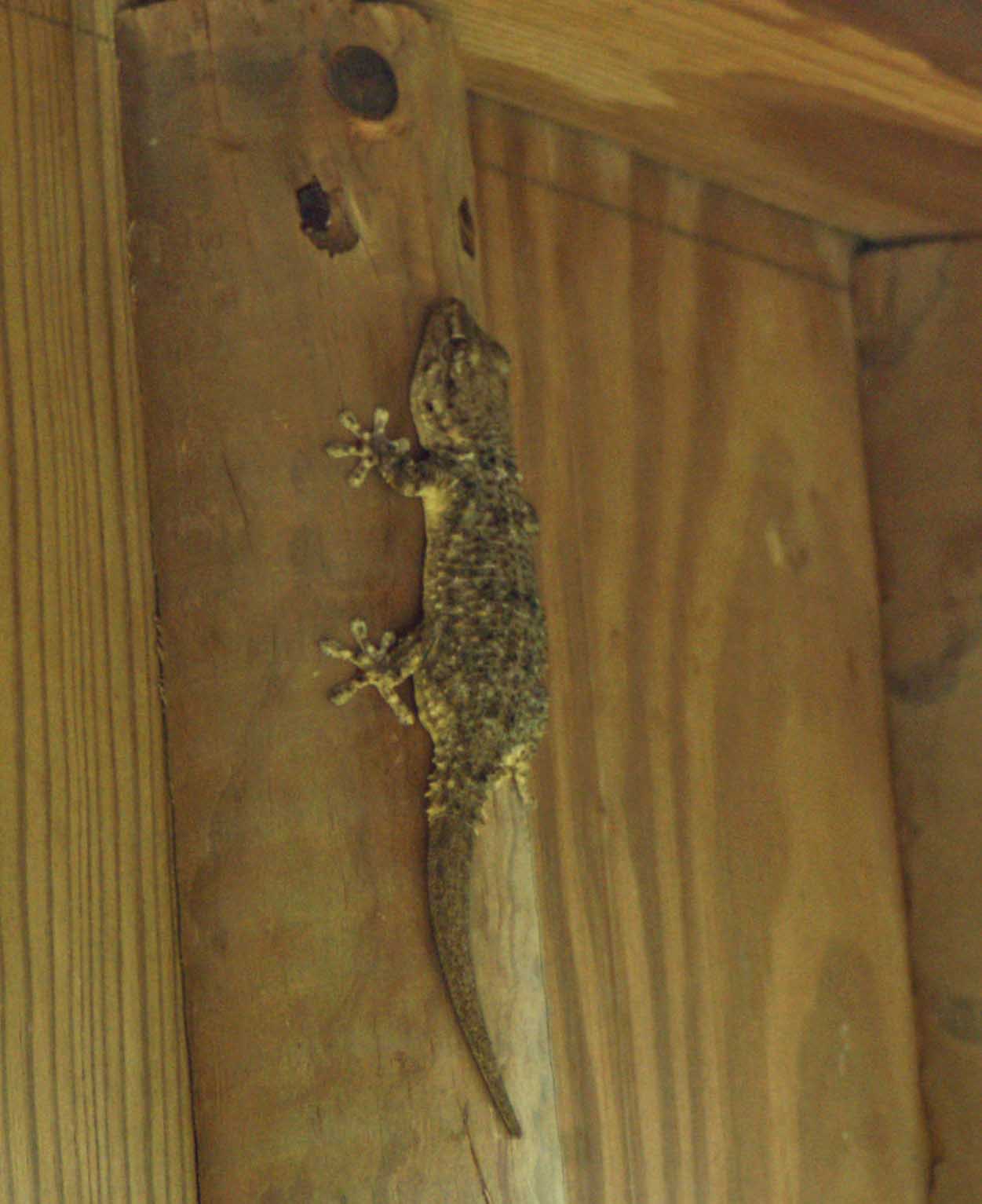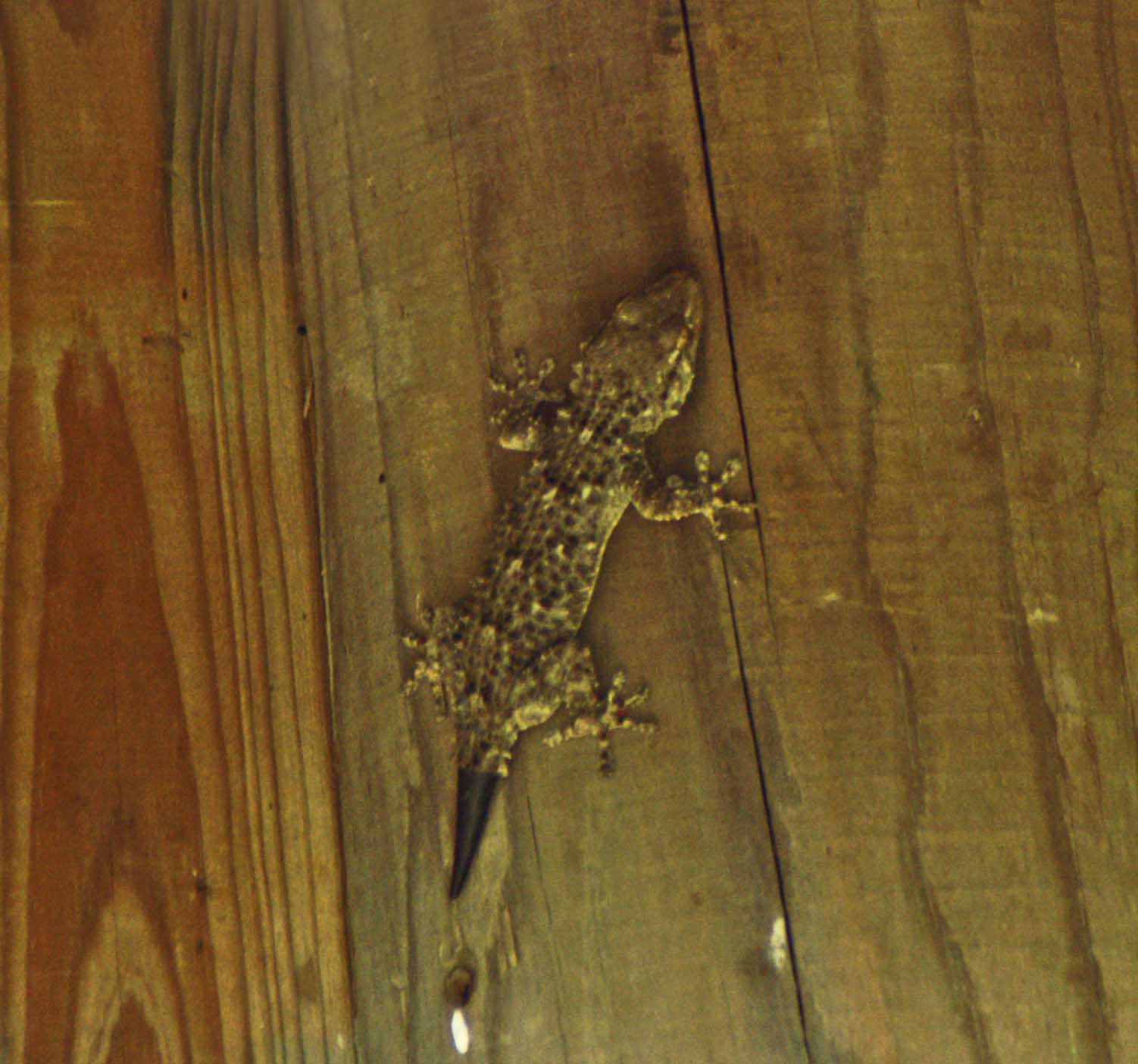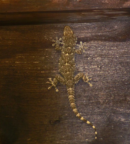 Geckos vary greatly in colouration, this very dark individual was barely visible against the dark wood