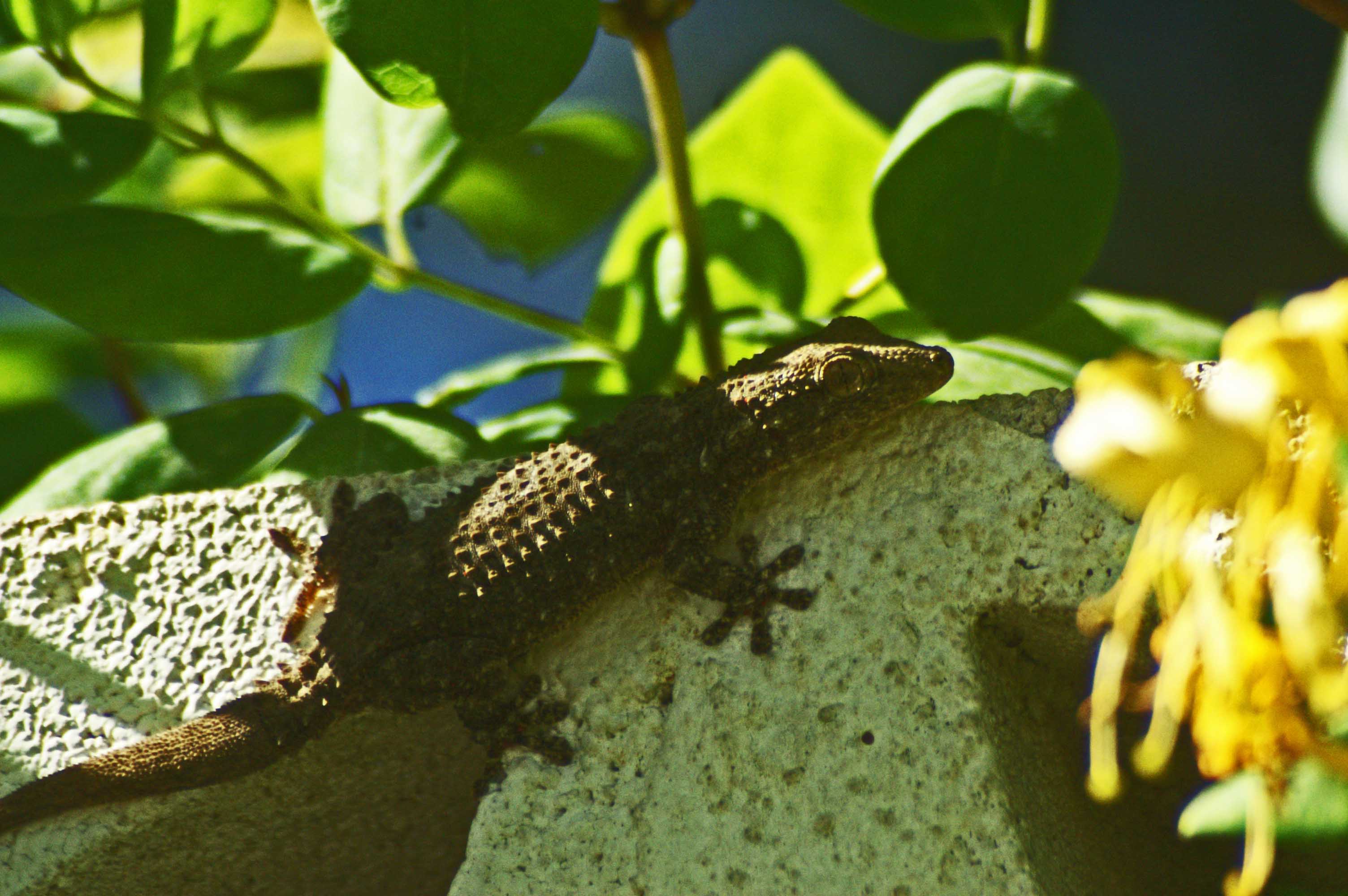 August is the month when you see lots of tiny 'baby' geckos. They look like miniatures of the adults, although the heads look too large for their bodies