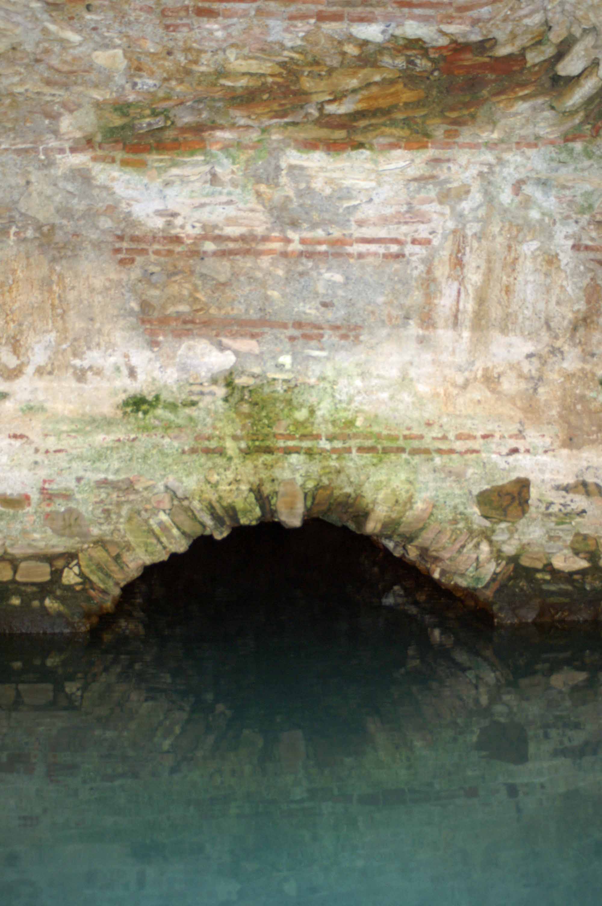 Four chambers of the original bathing complex still exist, although other adjacent water channels can be seen which suggest the complex was once much larger. A small first outdoors chamber leads via an archway and tunnel to a much larger inner chamber.An open entrance at the front of the building gives light and easier access to the large inner chamber and looking through it, you can see how beautifully built it is. Constructed from a combination of stone and bricks, the walls and roof form a perfect dome, rather like a large brick igloo, and are higher than you may expect. At the base of the walls on three sides there are arches that give access to the other chambers and through which the spring water flows to constantly replenish the baths.