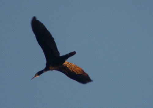 Our best views of Purple Herons were of individuals flying between various parts of the site, once they land amongst the reeds they are amazingly well camouflaged and they prefer to stay that way, much less commonly seen feeding openly as their Grey Heron cousins. There were other good sightings of flying waders too, Grey Herons were frequent spots, Night Herons were out and about too. There were a couple more sightings of Little Bittern and most unusually, one of a Common Bittern. Two Glossy Ibis flew across, their profiles unmistakeable against the increasingly bright sun, although not a great light to photograph against.