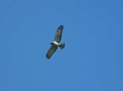 At the road bridge over the railway line there were three Lesser Kestrels flying around, but I was able to pull in for a quick look at them. I had a great view of a Short-toed Eagle as it flapped away low over a field too.