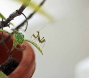 We discovered several tiny Praying mantids on a sage plant this morning. Perfect miniatures of the adults, they were maybe 2.5 – 3cm long and very aware of being noticed. They will have very recently emerged from their communal ‘ootheca’ or egg case, along with their siblings that could number up to 300 or more. Naturally they are very vulnerable to predation while at this stage and it will take the whole summer for them to grow into adults.