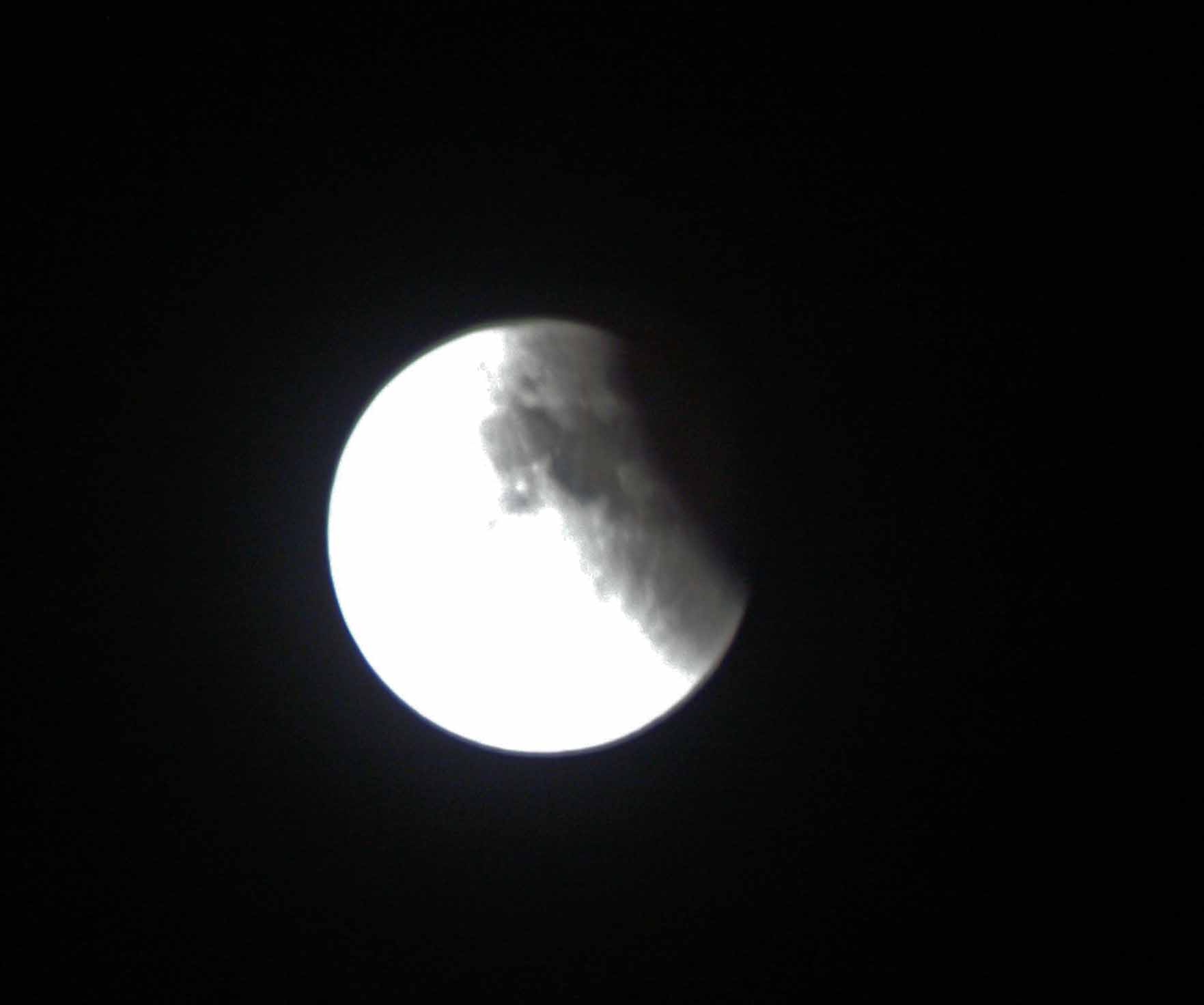 Our view of tonight’s eclipse of the moon was not as dramatic as we hoped, but we did almost forget about it. The photograph doesn’t do it justice as it did look truly beautiful; it was bright and luminous, as though it was lit from the inside and its features were very clear.
