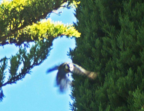 15/6/11-A Great Tit flying towards me, looking like a tiny owl