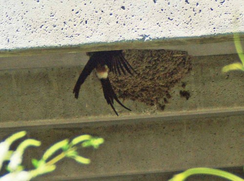 !8/6/11-The nest of the Red-rumped Swallow is a distinctive, upside-down igloo shape